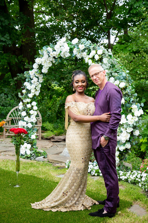 Ade and Greg wanted to do a first look before the ceremony to allow for all the photos to be taken in their backyard before their guests arrived. Being Toronto wedding photographers, we are used to traveling to multiple locations but this micro wedding allowed us to shoot in Ade & Greg's beautifully landscaped backyard. There was so much variety to shoot from and it was so meaningful that we were able to capture so much love and such a beautiful celebration in their own home.