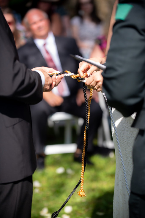 With the ceremony complete, we captured all the family photos in a beautiful green space by the cottage. Whenever we do family photos, we try to find a nice shady spot to avoid squinting and the hot sun. We think family photos get a bad wrap when really they don't have too. These photos can be fun and candid in addition to the formals that parents tend to love :)