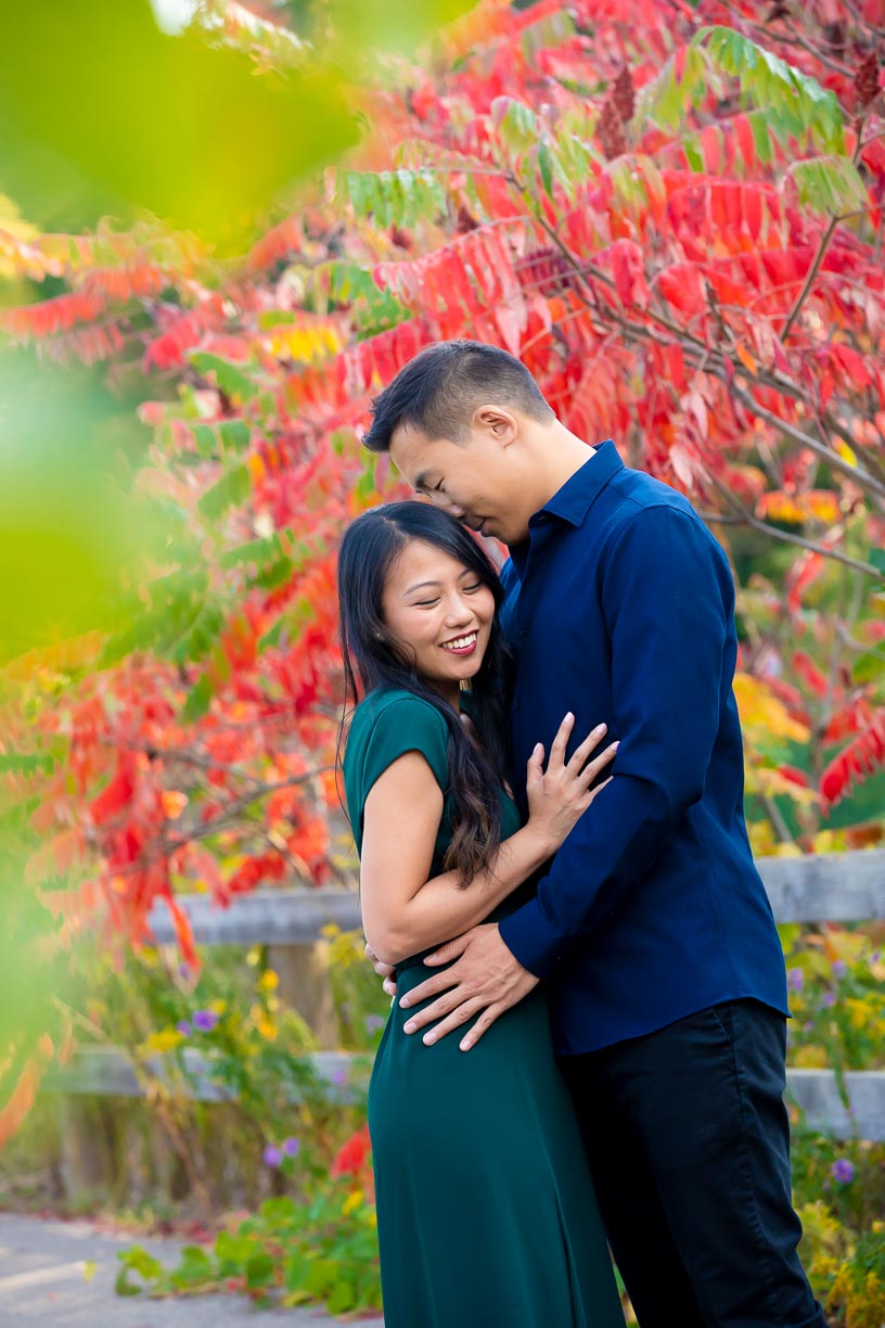Fall has arrived a little bit early this year and we are so happy that it did. It means that we are able to do fall engagement photos in weather that's just a little bit warmer while still getting that glorious orange, yellow and red background.
