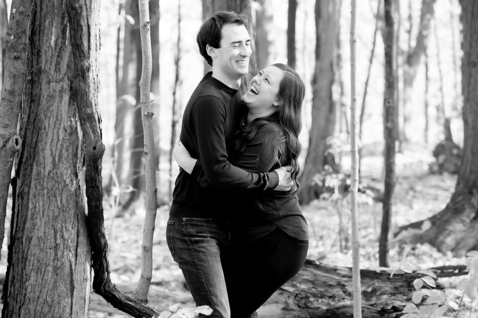 This engagement session was captured in a North York park. Lots of trees and trails providing for that golden forest look. As Toronto wedding photographers we always want to find locations that are free, large and provide lots of variety. This is one of our fave spots because it lends itself to beautiful backgrounds and has so much space, so that if one area becomes crowded, it's easy to move to another spot with almost no one around.